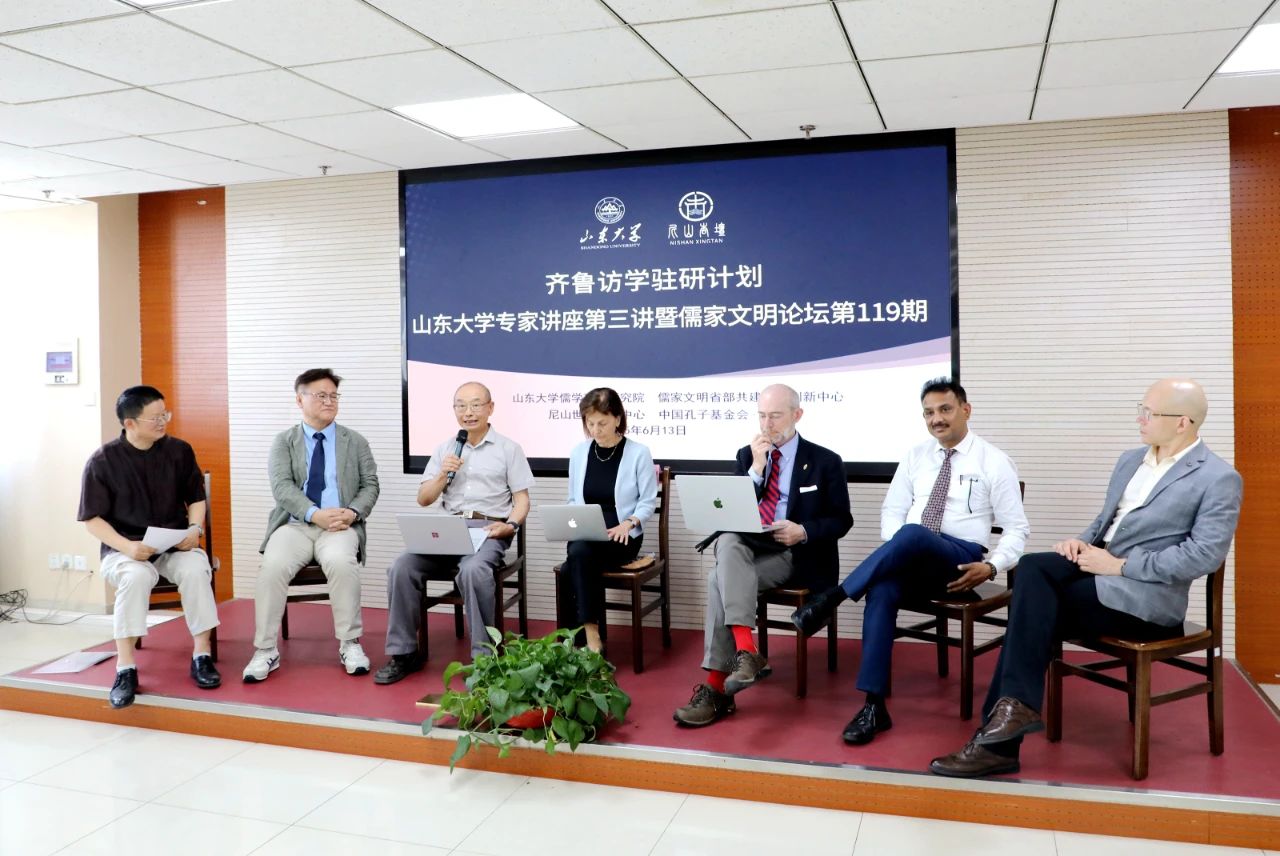 “齐鲁访学驻研计划”学术对话会在山东大学举行发表时间:2025-06-18 14:50来源:尼山世界儒学中心 6月13日,由尼山世界儒学中心、中国孔子基金会、山东大学儒学高等研究院、儒家文明省部共建协同创新中心联合主办的“齐鲁访学驻研计划”学术对话会在山东大学举行。对话会围绕“儒学作为哲学研究的当代意义”主题,深入探讨不同哲学体系之间的异同,为儒学哲学研究开辟新的视角和方向,促进了跨文化哲学交流与融合。
