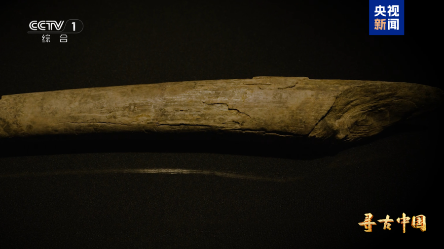 △山东临沂跋山遗址出土的距今约10万年的象牙质铲形器