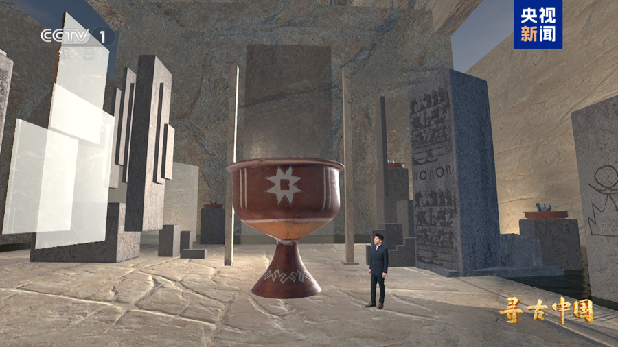 △虚拟演播室呈现的八角星纹彩陶豆