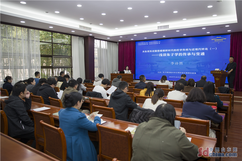 中国山东网·新感知10月31日讯 10月29日,“齐鲁访学驻研计划”系列学术讲座第七讲暨“中外文明交流互鉴”系列学术讲座第二十四讲在孔子研究院举行。2025年度齐鲁访学驻研计划访问学者、韩国成均馆大学东亚学术院博士后研究员李诗然以“从东亚历史脉络看朝鲜时代的经学传统与近现代转化(一):浅谈朱子学的传承与变通”为题作学术报告。