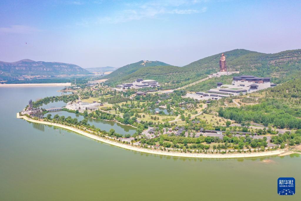 尼山水库及尼山圣境景区。 新华社记者 徐速绘 摄